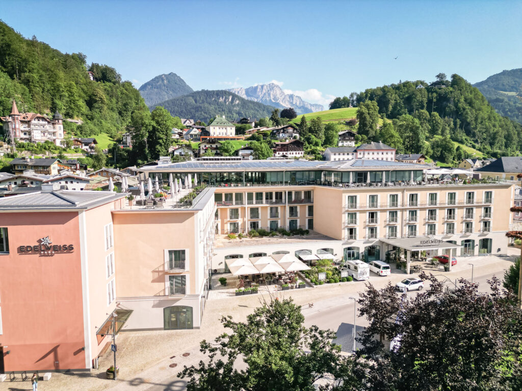 Malerischer und genussreicher kann eine Auszeit vom Alltag kaum sein! Das familiengeführte Vier-Sterne-Superior HOTEL EDELWEISS in Berchtesgaden ist der ideale Ort für eine unvergessliche Auszeit, die Outdoorerlebnis, Wellness und Kulinarik miteinander verbindet. Mitten im historischen Markt gelegen, ist das Hotel trotz der zentralen Lage ein Ruhepol für alle, die Erholung und entspannten Genuss suchen. Immer im Blick, König Watzmann und die umliegenden Berggipfel.