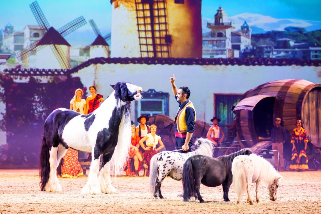 Mit an Bord sind unter anderem majestätische Friesen, elegante Lusitanos und feurige Andalusier. Laury Tisseur mit seiner spektakulären ungarischen Post und die waghalsigen Trickreiter der Hasta Luego Academy lassen mit ihren rasanten Manövern dem Publikum den Atem stocken. Die kleinen Zuschauer werden sich ganz besonders über die niedlichen Miniponys von Bartolo Messina freuen. Natürlich ist auch wieder die einzigartige Freiheitskünstlerin Sylvie Willms mit von der Partie, ebenso wie die hochtalentierte Equipe Pfeifer, die mit ihren atemberaubenden Wasser- und Feuerszenen beeindruckt.
