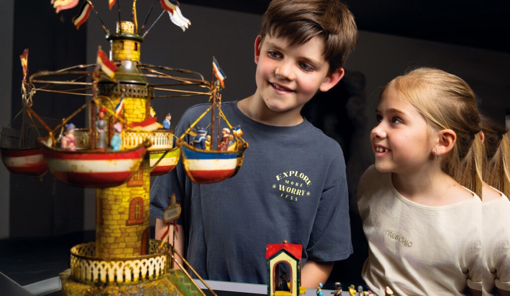 Ein paar Schritte weiter erwarten Besucher Vitrinen mit historischem Blechspielzeug – sorgsam erhalten und teilweise über einhundert Jahre alt. Darunter befinden sich fein gearbeitete Schiffe, in denen noch heute kleine Dampfmaschinen arbeiten. Neu hinzugekommen ist die „Meereswand“ – eine verspielte Einladung, in die Tiefen der Fantasie einzutauchen.