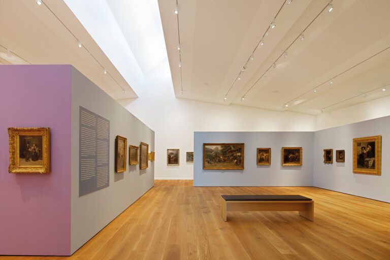 Die Eröffnungsausstellung umfasst Gemälde der Münchner Schule und der Düsseldorfer Malerschule mit Werken ihrer bedeutenden Vertreter Carl Theodor von Piloty, Wilhelm von Diez, Franz von Defregger und Hugo Kauffmann sowie