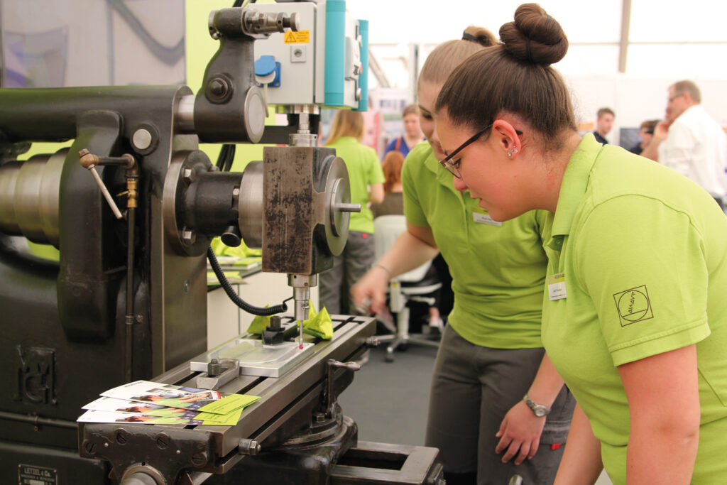 Am coolsten aber war der riesige Roboter NOX, der durch die Besuchermenge spazierte und Maximilian und seine Freunde ansprach. Daher sprudelte es nur so aus ihm heraus, als er beim Mittagessen von seinem Vormittag erzählte. Zuerst war Maximilian vom Messebesuch nicht so begeistert. Jede Menge Betriebe, lauter fremde Leute, die er nicht kannte und die Fragen wusste er auch noch nicht. Die Auswahl von fünf Betrieben war ihm gar nicht so leicht gefallen – bei 130 regionalen Ausstellern. Im Nachhinein war es aber ein erfolgreicher Vormittag. Er war stolz auf sich, hatte er doch richtig gute Gespräche geführt. Zudem konnte Maximilian sich gut vorstellen, ein Praktikum bei einem der fünf Betriebe zu machen. Ein Firmenchef hatte ihm dies sogar vorgeschlagen. Dazu wollte er aber am Samstag nochmals mit seinen Eltern die Messe besuchen. Also machte sich die ganze Familie am nächsten Tag auf Richtung Burghausen. Das Parken am Waldpark in Lindach und der Shuttlebus zum Messegelände klappte hervorragend und schon bald sind sie in den Gängen des Messezeltes unterwegs. Maximilians Schwester Lena strebt die anwesenden Hochschulstände an, um sich über ein Studium zu informieren. Papa hingegen denkt über einen Jobwechsel nach. Nach 10 Jahren im gleichen Betrieb wäre es an der Zeit, meint er. Daher dauert es – für Maximilian gefühlt ewig – bis er mit seinen Eltern vor „seinem“ Messestand steht, um dort nochmals genauer zwecks Praktikum und der Möglichkeit einer Ausbildung im Betrieb nachzufragen.