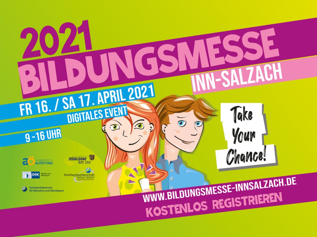 Bereits jetzt können sich Schüler und Weiterbildungsinteressierte bei der digitalen Messe unter www.bildungsmesse-innsalzach.de kostenlos registrieren. Bis zu den Messetagen am 16. und 17. April, können sich die Messebesucher und Aussteller in der Kommunikationsplattform „talentefinder“ schriftlich kennenlernen und Termine vereinbaren. An den beiden Messetagen können sich Besucher und Aussteller persönlich über Videogespräche unterhalten. Zusätzlich findet ein Live-Eventprogramm mit vielen interessanten Vorträgen, Firmenpräsentationen und Vorstellungen der Bildungsanbieter statt. Das Landratsamt Altötting freut sich auf deinen virtuellen Besuch!