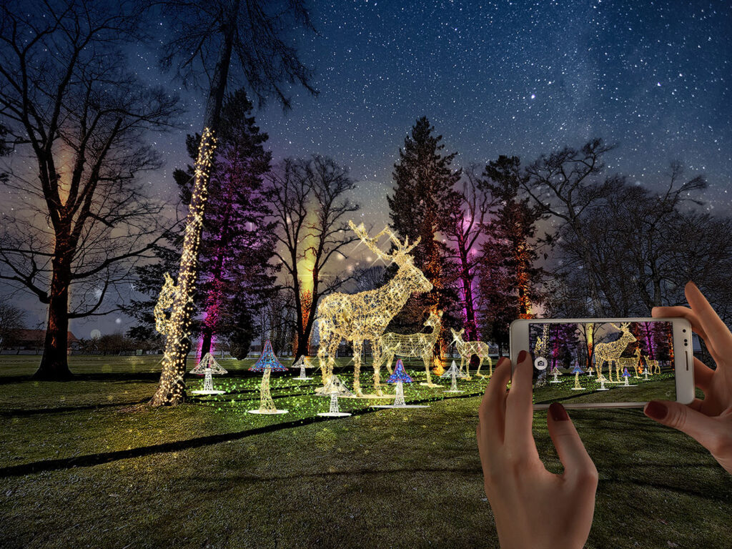 Und es gibt noch mehr: Neben den mehr als 200 bunt-glitzernden Lichtskulpturen, verströmt das Weihnachtsdorf mit rund 70 ausgewählten Ausstellern traditionelles Weihnachtsmarkt-Ambiente und lädt zum Genießen und Verweilen ein. Eine spektakuläre Schlossillumination mit eindrucksvoller Videomapping-Show, funkelnde Wasserfiguren, weihnachtliche Klänge und viele weitere märchenhafte Überraschungen runden das Erlebnis ab! Umgesetzt werden diese audiovisuellen Erlebnisse von einem Team aus international renommierten Licht- und Videokünstlern. Der Lichterpark basiert auf energieeffizienter LED-Technologie. Dieses Konzept erlaubt es, ein eindrucksvolles Wintererlebnis zu schaffen, das gleichzeitig verantwortungsvoll mit den aktuellen ökologischen Herausforderungen umgeht.